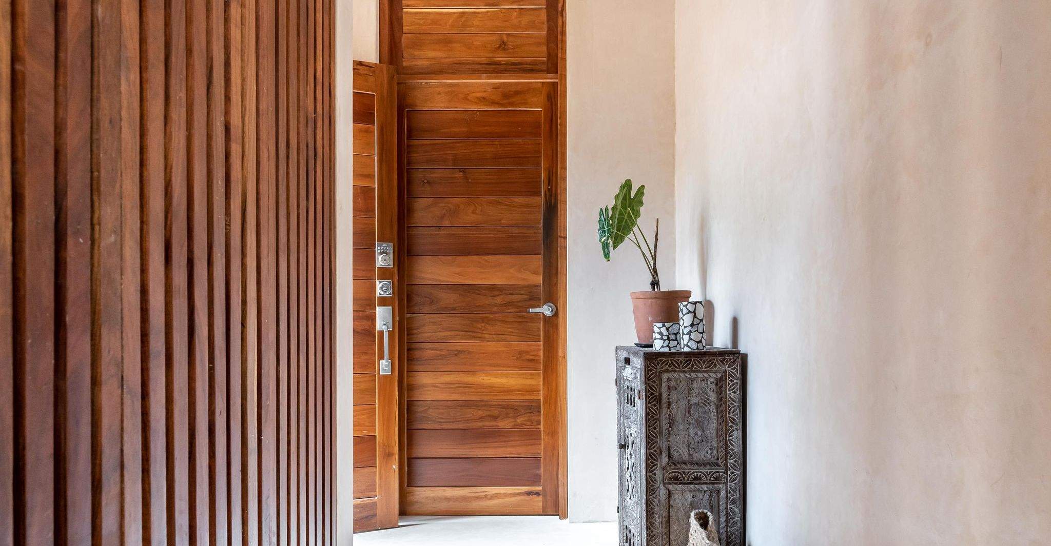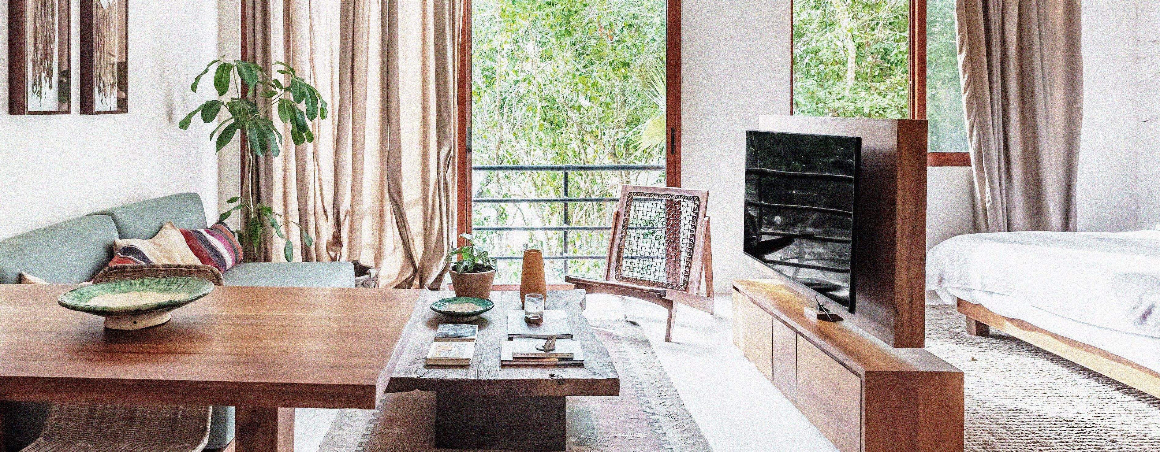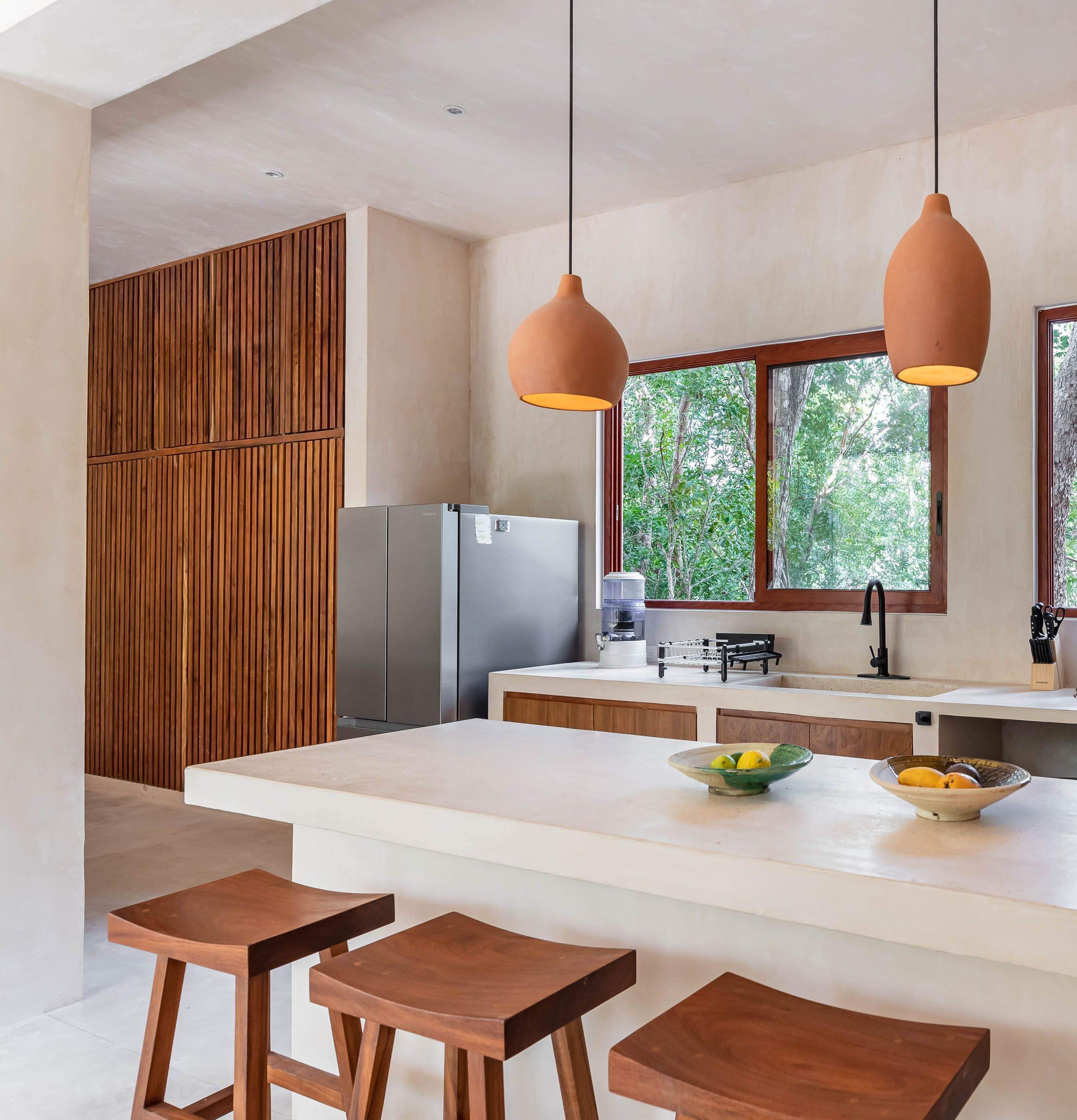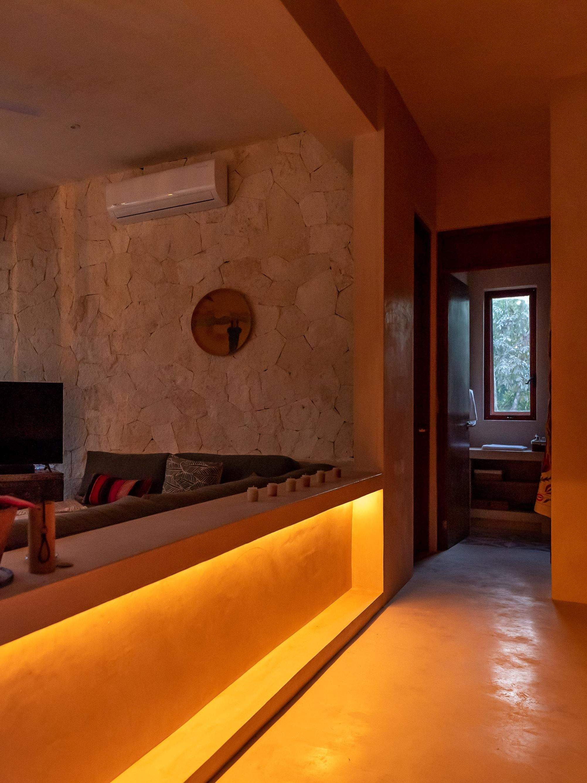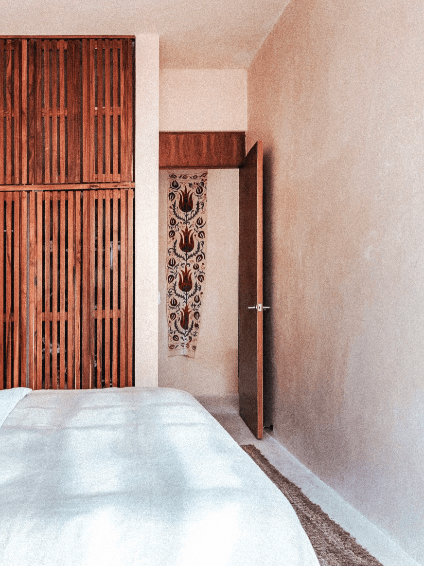 A home designed to honor the beauty of its natural surroundings. The project began as a two-bedroom apartment and was transformed architecturally into two independent spaces — a spacious main apartment and a private lock-off studio. High ceilings, stone walls, and wood finishes create a calm and expansive atmosphere, where natural materials and craftsmanship define both comfort and simplicity. All of the furniture pieces were designed by us and handmade by our team of skilled artisans.
